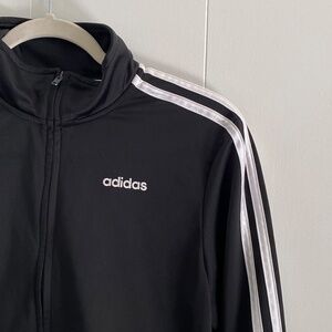 Classic Adidas black with white stripes full zip jacket Youth size L