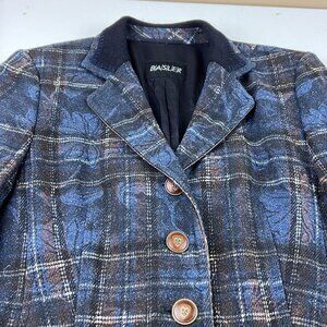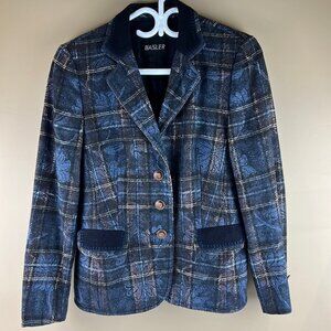 Absolutely stunning blue and brown plaid with a floral damask undertone.