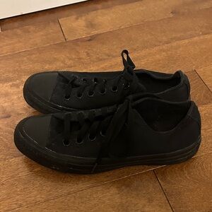 Step out in style with these classic black canvas sneakers. Perfect for any casual occasion, these shoes offer comfort and versatility. A must-have for your wardrobe.