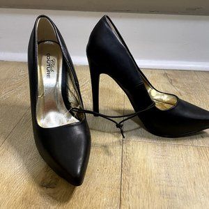 Classic black heels, 6 inches, pointed toe, matte black; gorgeous gold inner lining