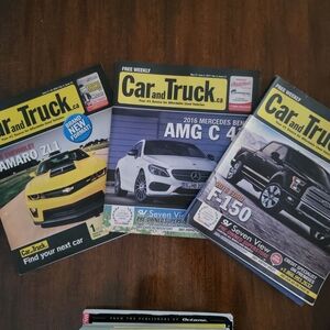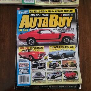 Collection of car magazines featuring classic cars. Includes vibrant covers with various car models.