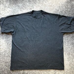 Simple and versatile men’s basic t-shirt in a dark gray color. Size estimated as XL based on measurements. No visible brand, size, or material tags. Soft and lightweight, perfect for everyday wear, lounging, or layering. Good used condition with no noticeable flaws.