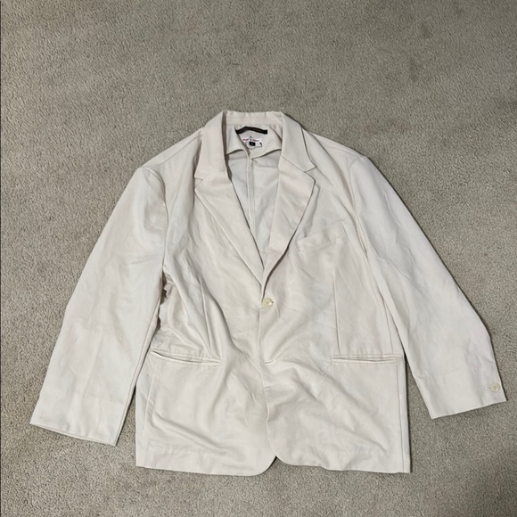 Elegant cream blazer with a single button closure. Perfect for formal occasions.