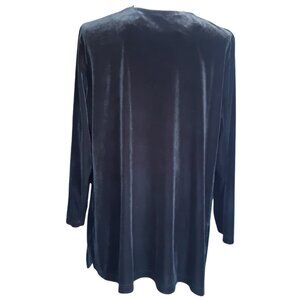 Classic Elements SZ 2XL Black Velour Women's Button Up V-Neck Tunic Top