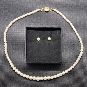 Classic Faux Pearl Necklace & Matching Stud Earring Set Gold Tone Vintage Style