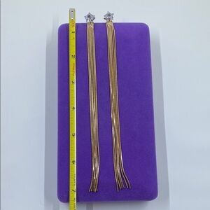 Elegant gold tassel earrings featuring a stunning star design. Perfect for adding a touch of glamour to any outfit.