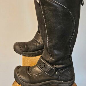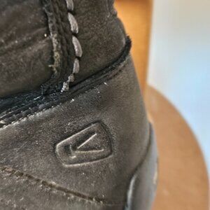 Full side zip, cut out detailing on instep strap, stitching details, pull tab on back.