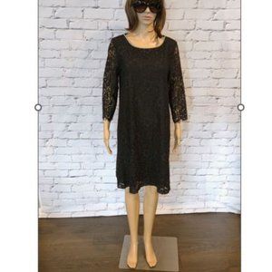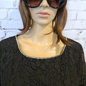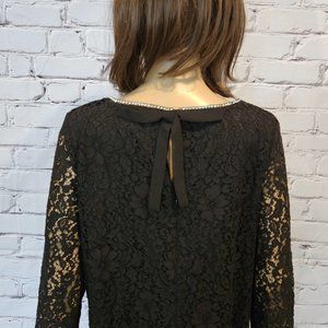 Classic LBD! KARL LAGERFELD PARIS, Black lace shift dress with crystal neckline