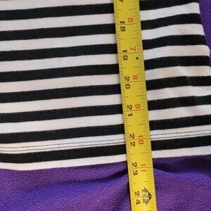 Beautiful material. Black and white striped cotton stretch t-shirt with square neck.
