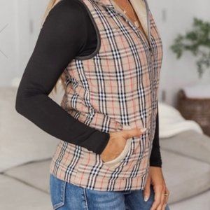 Classic Plaid Vest, Beige, Black & Red - Pink Lilly - NEW w/ Tags- Size Small