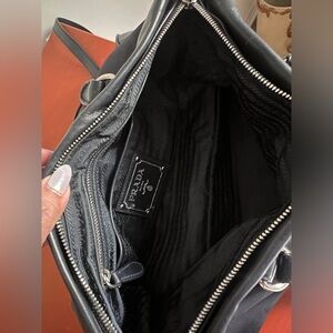 Prada bag can be used for everyday need with its shoulder strap . Make it to formal ocassion with the handle . Bought from Italy . Spacious with inside slits and pockets . Used with tender love and care . Comes with the dust flap