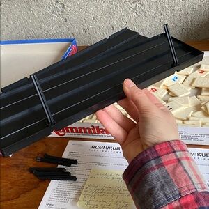 Such a classic and beloved game. We loved playing this at the cabin with young kids all the way up to grandparents. Instructions included in box and there are quick YouTube tutorials to follow to get the hang of the idea. This is old and well used. The box is a little beat up but the contents/game pieces are good. Buyer please note one support leg missing from stand but it still holds the tiles up with one leg no problem. See photos. My best estimate based on my age is that this is from mid-90s. We’ve had it forever.