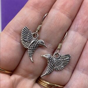 Elegant silver hummingbird -shaped earrings. Perfect for any occasion.