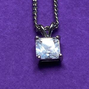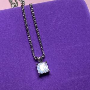 💛 Classic Stainless Steel Princess Cut Crystal Solitaire Necklace