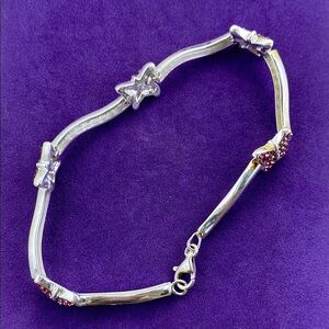 💛 Classic Sterling Silver White & Pink Crystal Butterfly Bracelet