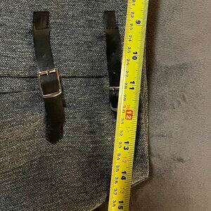 Skirt wraps around and has waist button. Has small black buckle straps. Is unlined. The material is reasonably wrinkle resistant. Measurements shown. Sexy with tall boots and a sweater.