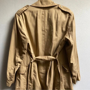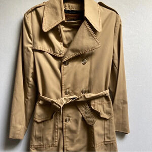 Elevate your style with this classic tan trench coat. Perfect for any occasion, this coat offers both elegance and functionality.