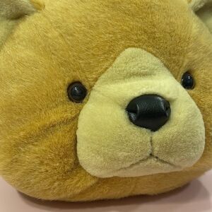 Classic Teddy Bear Head Pillow Golden Beige/Brown w Black Nose Excellent Used …