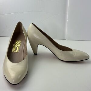 Achieve a timeless and sophisticated look with these vintage-inspired Salvatore Ferragamo heels.