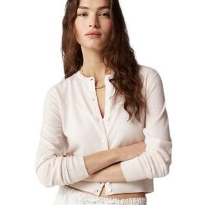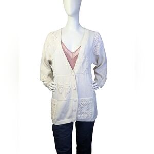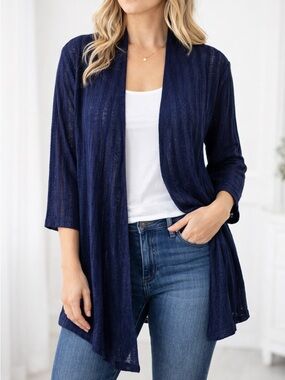 Lightweight white open-front cardigan for easy layering. Soft provides breathable comfort. Versatile style pairs well with casual or work outfits. Simple design for timeless everyday wear.