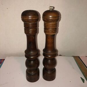 Stylish wooden pepper and salt grinders. Deep brown finish. Ideal for any kitchen.