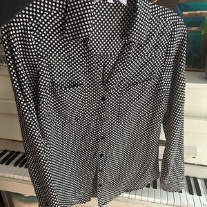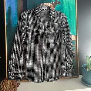 Elevate your style with this classic black and white polka dot shirt. Perfect for casual outings or smart-casual events.