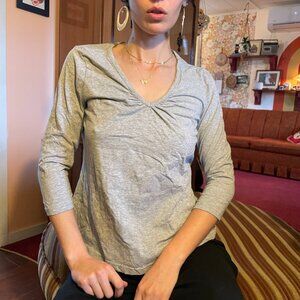 Classic Y2K reitmans cotton spandex grey v neck ¾ sleeve shirt