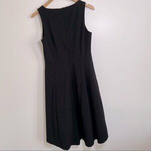 Style: Fitted body, high neckline, sleeveless, flared full skirt past the knee