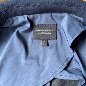 This is an absolutely classic piece you'll wear for years!  Beautiful constructed, with many of the tailoring details you'd expect from older BR items, including a proper felt undercollar, bound edges, and minimally lined.  The sleeves are lined with a cute striped fabric in case you want to cuff the blazer for a more relaxed look. Gold buttons add polish, but the patch pockets and slightly unstructured design keep it from looking too stuff. It's a nice weight to wear from spring to fall, and the navy goes with everything.