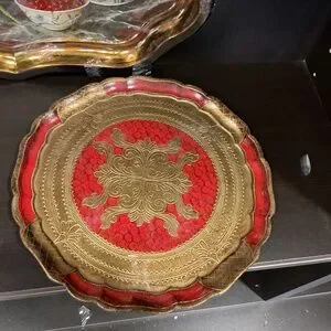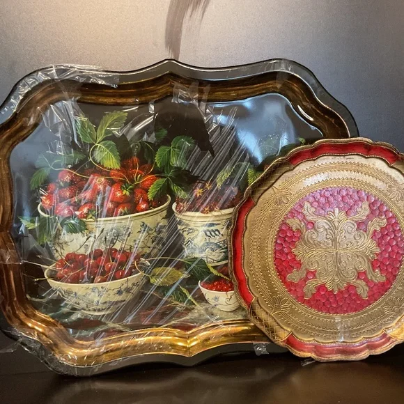 Beautiful oversized metal tray with gorgeous print. Dark and traditional. Great for a Ralph Lauren style and smaller red and gold tray