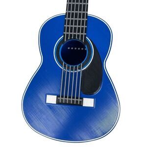 Guitar-Inspired Design: Shaped like a classical guitar with a bright blue body, a brown back and mount, a black neck, and gray "strings" for a realistic look.