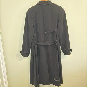 Multi-season black trench coat in size 10, rain resistant, removeable liner (with an inside pocket!), extra buttons, button accent on back, belt, 'belted sleeves'