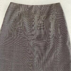 Classiques Entier Lined 100% Virgin Wool Check Print Pencil Skirt Grey+Tan Sz 8