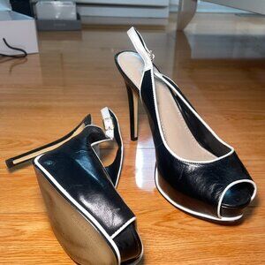 It's giving boss babe! These sensual leather black heels with white trim are sophisticated and perfect for a day in the office or any formal occasion.