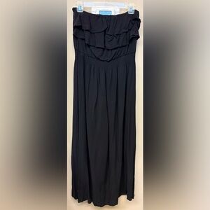 Claude d'alban strapless black ruffle maxi long dress women's size Large