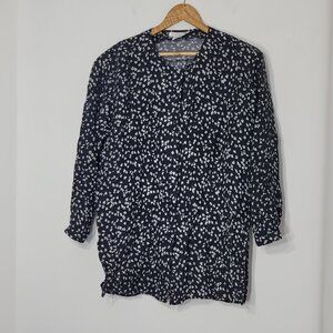 Claudia Barnes Black White Loose Fit Casual Button-Front Blouse Office Medium