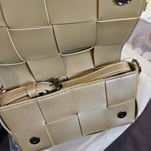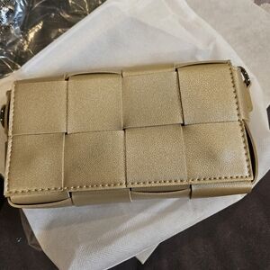 Claudia Canova weave crossbody bag in gold. Material is PVC. really well made. New with tags. Comes with dustbag.