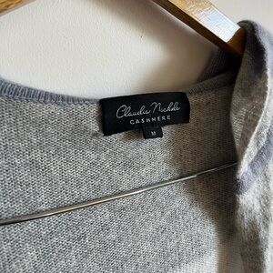 Claudia Nichole 100 % Cashmere Striped Hooded Sweater - Gray and Blue