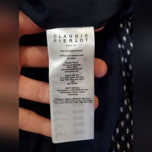 Claudie Pierlot Paris "Ruffled Shirt Dress". Textured. Navy Blue & White. 4 US.