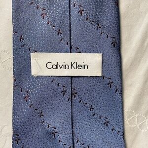 Clavin Klein Blue/Gray & Gold Specks Vine Print !00% Silk New Standard Tie