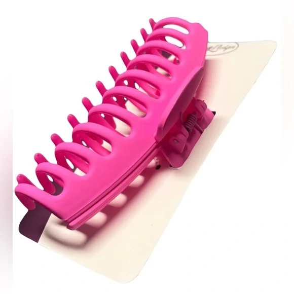 Make a bold statement with this extra-large pink claw clip, designed to hold even the thickest hair with ease. Brand new and still in its original packaging, this clip ensures both style and durability. Its vibrant pink color adds a touch of flair to any look, while the extra-large size provides a secure, comfortable hold all day. Perfect for a variety of hairstyles, this claw clip is an essential for those seeking both function and fashion.