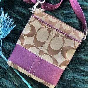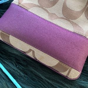 I've only ever used this coach purse max 5 times. The interior has been kept very clean as well as the exterior. There is a bit of a spot on the purse near the bottom however I'm sure it can be removed and its very faint. As far as the quality - it is great quality and was purchased at the coach store in NYC. I just don't seem to grab it in my closet these days.