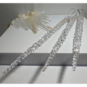 Clear Acrylic Icicle Christmas Ornaments With Ribbon Lg Icicles 9"