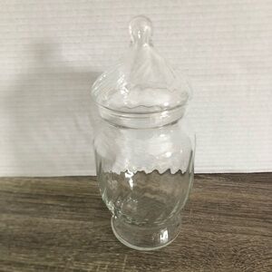 Elegant clear glass apothecary jar with lid. Perfect for storage or decoration.
