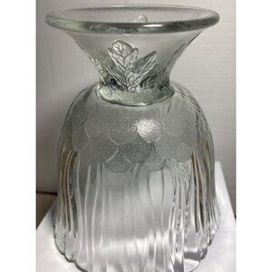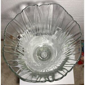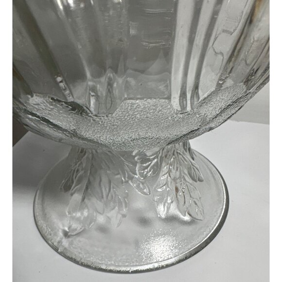Clear Glass Pedestal Bowl With Leaf Design & Scalloped Edge Textured Embossed 8"