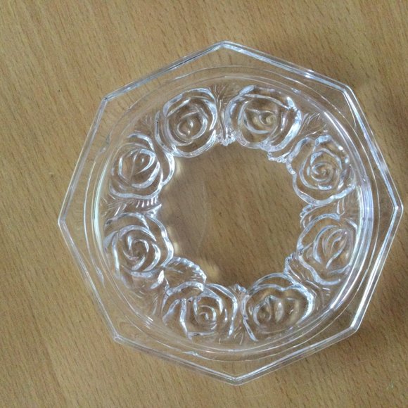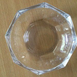 It is a very nice glass jar container octagonal, very clear, and heavy for that size. crystal?