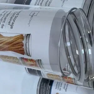 Set of five clear plastic storage containers. Ideal for organizing kitchen essentials. Airtight lids for freshness.