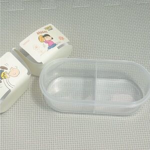 Clear Snoopy Lunch box featuring cartoon characters. Very quality & strong. Perfect for lunches.