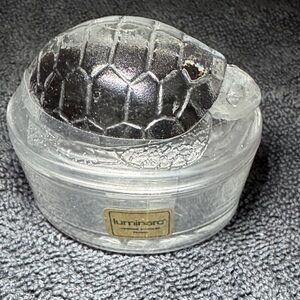 This item is a vintage Luminarc Verrerie d'Arques sea turtle trinket box made of clear molded glass.