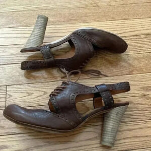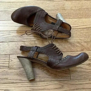 ❤️Clearance❤️[EU40/US9.5]Zinda Closed Toe Cut out Heeled Brown Leather Sandal